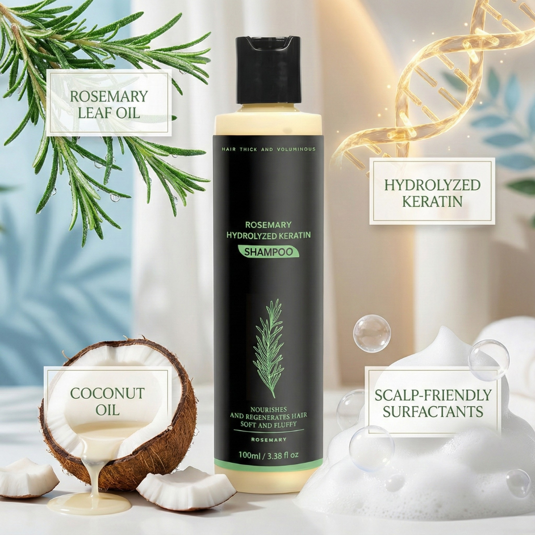 Finally… a gentle, science-backed shampoo that fits into your everyday routine. The TrueKind™ Rosemary Hydrolyzed Keratin Shampoo uses an optimal blend of strengthening keratin, scalp-soothing rosemary oil, and hydrating coconut oil to support hair prone to thinning, fallout, and breakage.